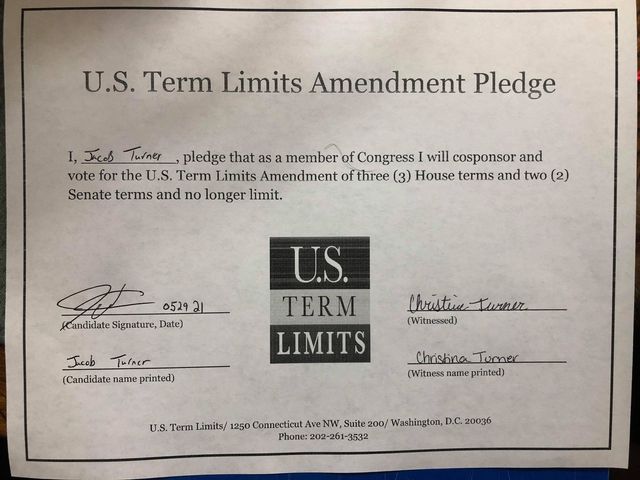 Washington D.C. – U.S. Term Limits (USTL), the leader in the non-partisan national movement to limit terms for elected officials, praises 2022 U.S. house candidate for Missouri, Jacob Turner (district 8), for signing the pledge for an amendment to term limit Congress. Previously, candidate Jeremy Dennison also signed the pledge.