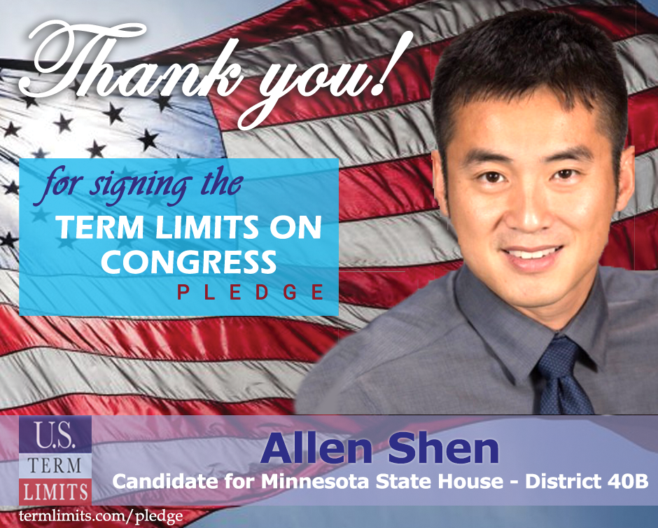 The U.S. Term Limits pledge is provided to candidates and members of state legislatures. It reads, “I pledge that, as a member of the state legislature, I will cosponsor, vote for, and defend the resolution applying for an Article V convention for the limited purpose of enacting term limits on Congress.”