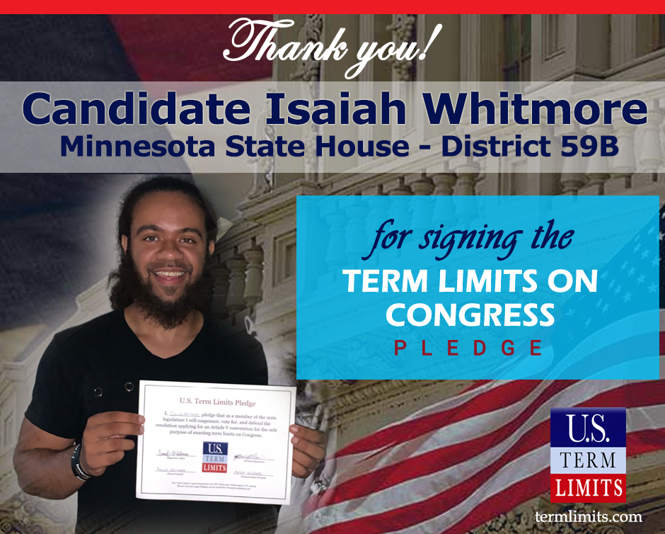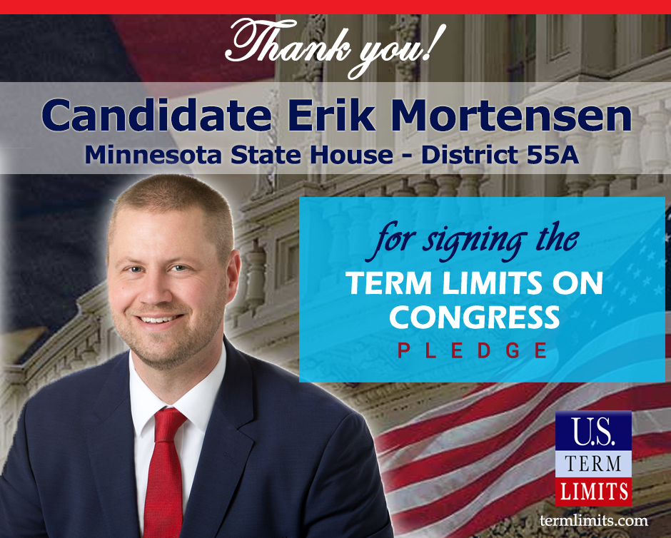 The U.S. Term Limits amendment pledge is provided to every announced candidate for federal office. It reads, “I pledge that as a member of Congress, I will cosponsor and vote for the U.S. Term Limits amendment of three (3) House terms and two (2) Senate terms and no longer limit.”