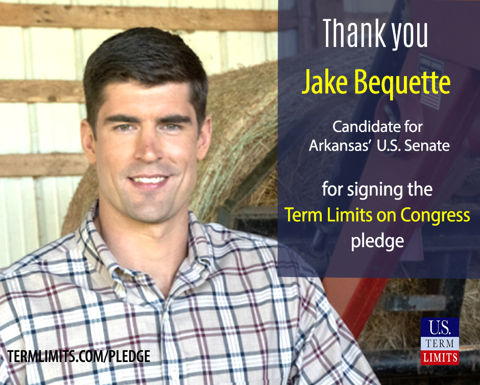 Washington D.C. – U.S. Term Limits (USTL), the leader in the non-partisan national movement to limit terms for elected officials, praises 2022 U.S. senate candidate for Arkansas, Jake Bequette, for signing the pledge for an amendment to term limit Congress. Previously candidate Michael Deel also signed the pledge.