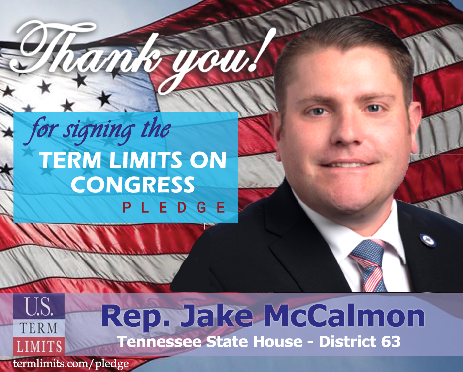 Nashville, TN – U.S. Term Limits (USTL), the leader in the national, non-partisan movement to limit terms for elected officials, is gathering support from state lawmakers across the nation. Its mission is to get 34 states to apply for an amendment proposal convention specific to term limits on Congress. Tennessee State Rep. Jake McCalmon (district 63), has committed support for term limits on Congress by signing the Term Limits Convention pledge.