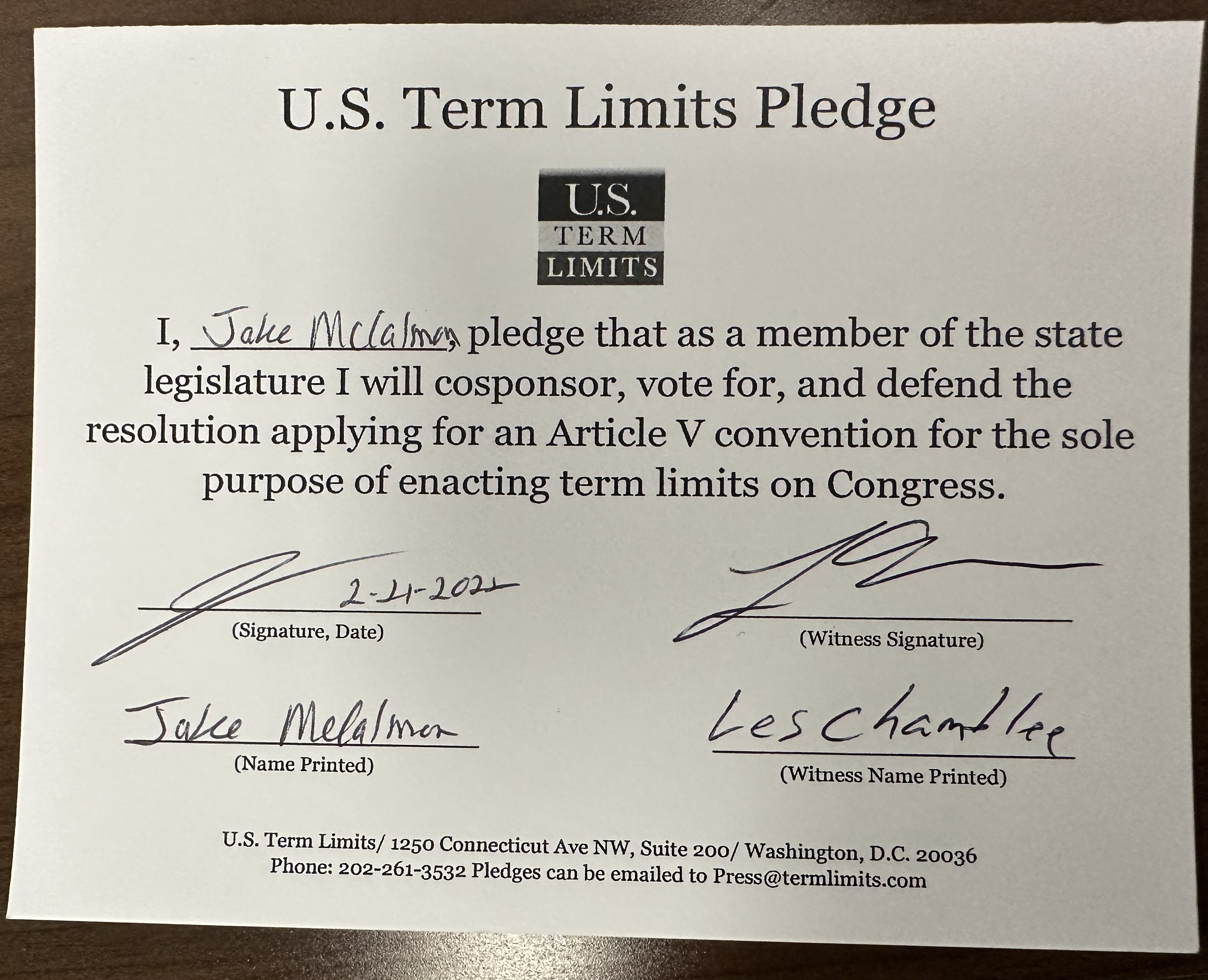 Rep. Jake McCalmon Pledges to Support Congressional Term Limits