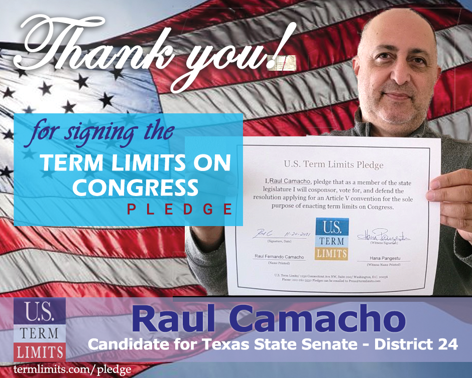 “Term limits is critical for the future of our country. I am glad James has signed the pledge in supporting term limits on Congress. It shows that James understands the importance of the vision of our founding fathers and fixing DC,” says U.S. Term Limits state chair, Ed Walker.