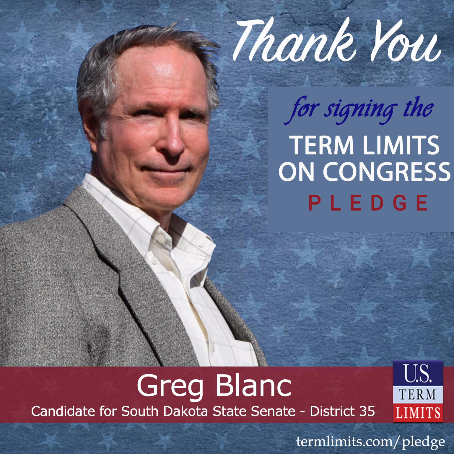 The U.S. Term Limits pledge is provided to candidates and members of state legislatures. It reads, “I pledge that, as a member of the state legislature, I will cosponsor, vote for, and defend the resolution applying for an Article V convention for the limited purpose of enacting term limits on Congress.”