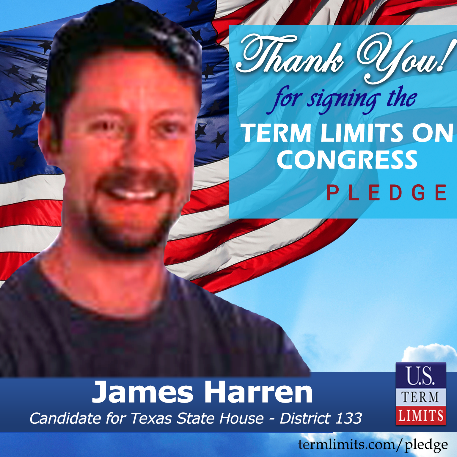 USTL President, Philip Blumel, commented on Harren’s pledge saying, “James’s strong support of term limits shows that there are individuals who are willing to listen to the majority of voters who want term limits. America needs a Congress that will be served by citizen legislators, not career politicians.”