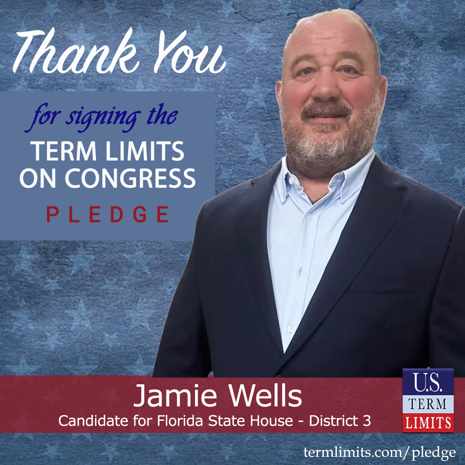 Crestview, FL – U.S. Term Limits (USTL), the leader in the national, non-partisan movement to limit terms for elected officials, is gathering support from state lawmakers across the nation. Its mission is to get 34 states to apply for an amendment proposal convention specific to term limits on Congress. 2025 Florida state house candidate, Jamie Wells (district 3), has committed support for term limits on Congress by signing the term limits convention pledge. Previously, candidate Hayden Hudson also signed the pledge.  The special primary election is scheduled for April 1, 2025.
