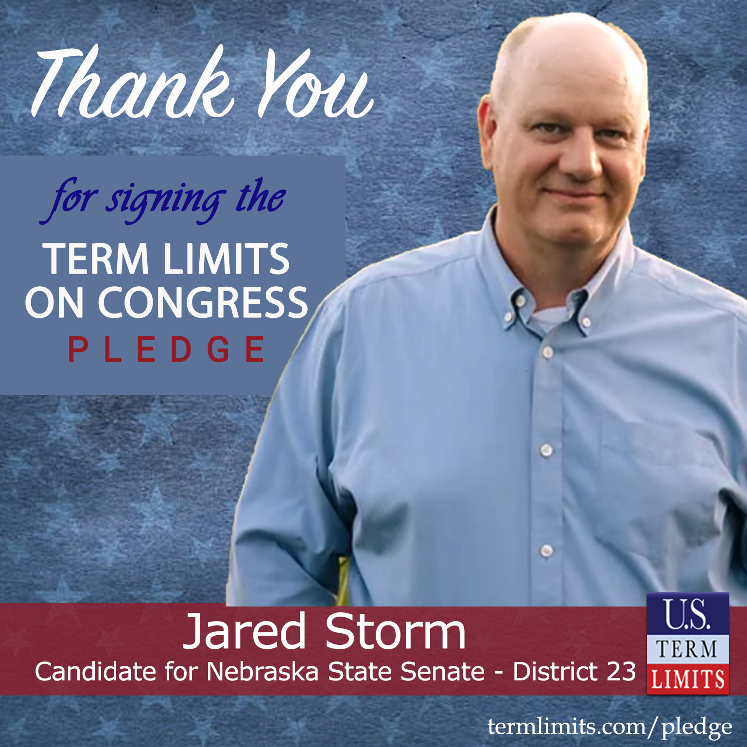 Lincoln, NE – U.S. Term Limits (USTL), the leader in the national, non-partisan movement to limit terms for elected officials, is gathering support from state lawmakers across the nation. Its mission is to get 34 states to apply for an amendment proposal convention specific to term limits on Congress. Nebraska state senate candidate, Jared Storm (District 23), has committed support for term limits on Congress by signing the term limits convention pledge. Previously, candidates Alan Zavodny, Jacob Wolff , Dennis Fujan and Allie French also signed the pledge.