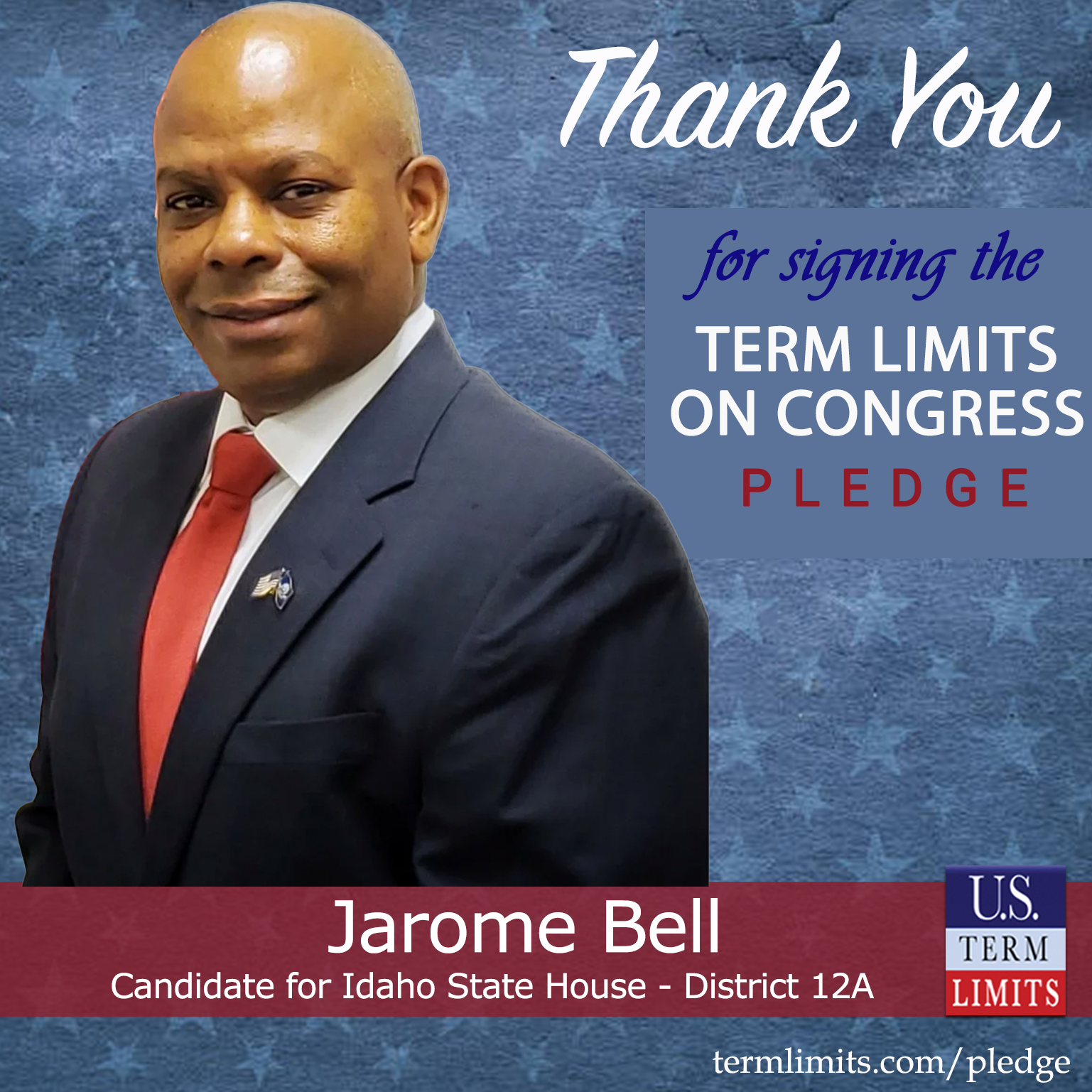 Boise, ID – U.S. Term Limits (USTL), the leader in the national, non-partisan movement to limit terms for elected officials, is gathering support from state lawmakers across the nation. Its mission is to get 34 states to apply for an amendment proposal convention specific to term limits on Congress. Idaho state house candidate, Jarome Bell (District 12A), has committed support for term limits on Congress by signing the Term Limits Convention Pledge. Bell is the first signer in this race.
