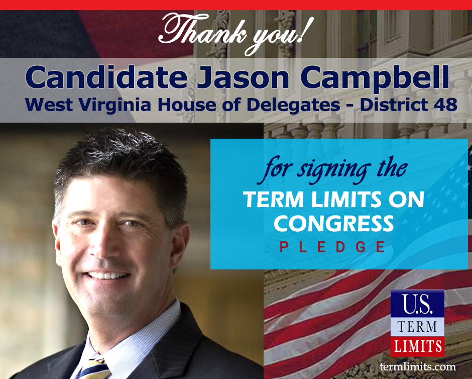 Washington, D.C. – U.S. Term Limits (USTL), the leader in the national, non-partisan movement to limit terms for elected officials, is gathering support from state lawmakers across the nation. Its mission is to get 34 states to apply for an amendment proposal convention specific to term limits on Congress. West Virginia house of delegates candidate, Jason Campbell (district 48) has committed support for term limits on Congress by signing the Term Limits Convention pledge. Previously, six other candidates Garrett Stire, Laura Kimble, Clay Riley, Ben Hanlan and Delegates Ben Queen and Danny Hamrick also signed the pledge. The primary election is scheduled for June 9, 2020.