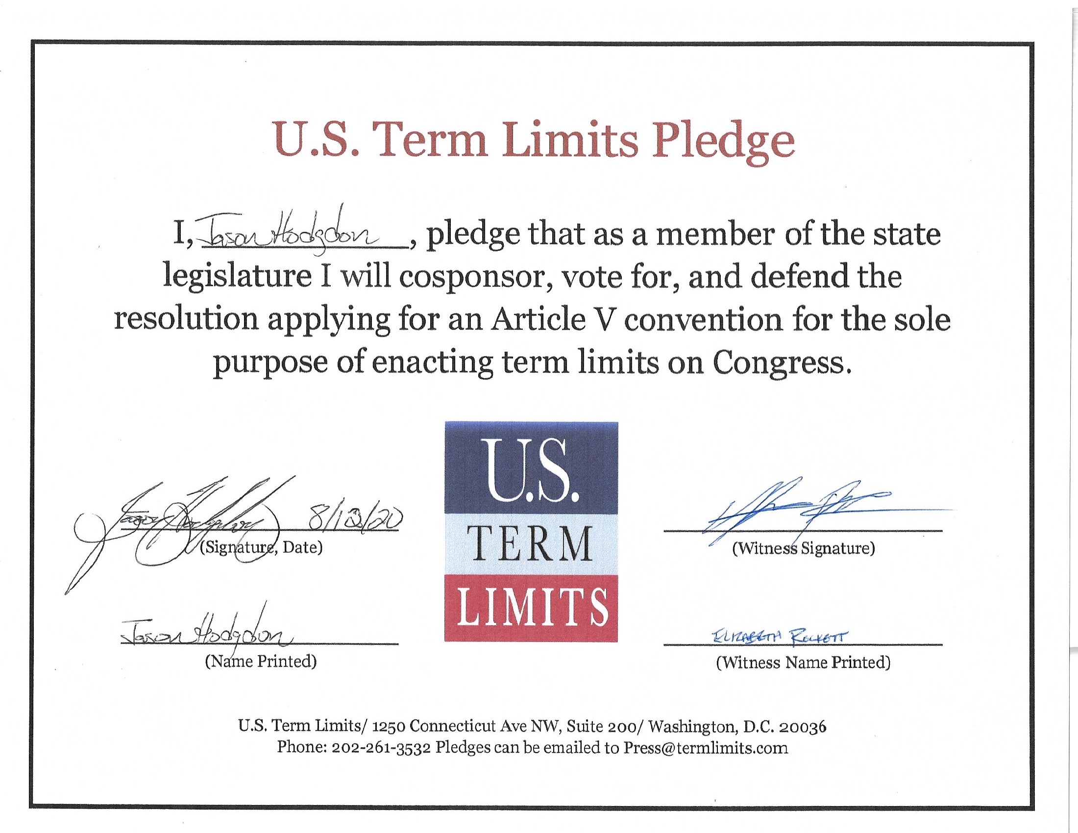 Jason Hodgdon Pledges to Support Congressional Term Limits