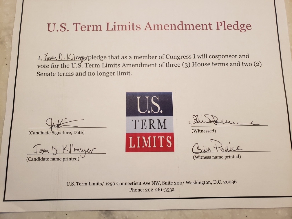 Washington D.C. – U.S. Term Limits (USTL), the leader in the non-partisan national movement to limit terms for elected officials, praises 2022 U.S. house candidate for Pennsylvania, Jason Killmeyer (district 17), for signing the pledge for an amendment to term limit Congress. Previously, candidates Kathy Coder and Jeremy Shaffer also signed the pledge. The primary election is scheduled for May 17, 2022.