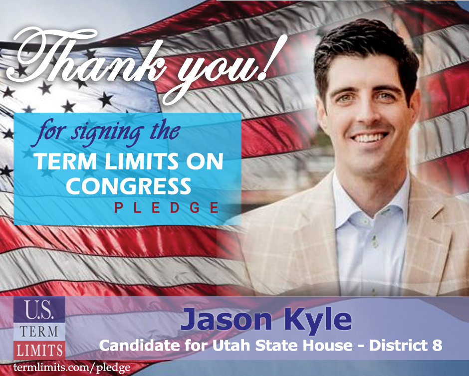Ogden, UT – U.S. Term Limits (USTL), the leader in the national, non-partisan movement to limit terms for elected officials, is gathering support from state lawmakers across the nation. Its mission is to get 34 states to apply for an amendment proposal convention specific to term limits on Congress. Utah state house candidate, Jason Kyle (district 8) has committed support for term limits on Congress by signing the Term Limits Convention pledge. Kyle is the first signer in this race.