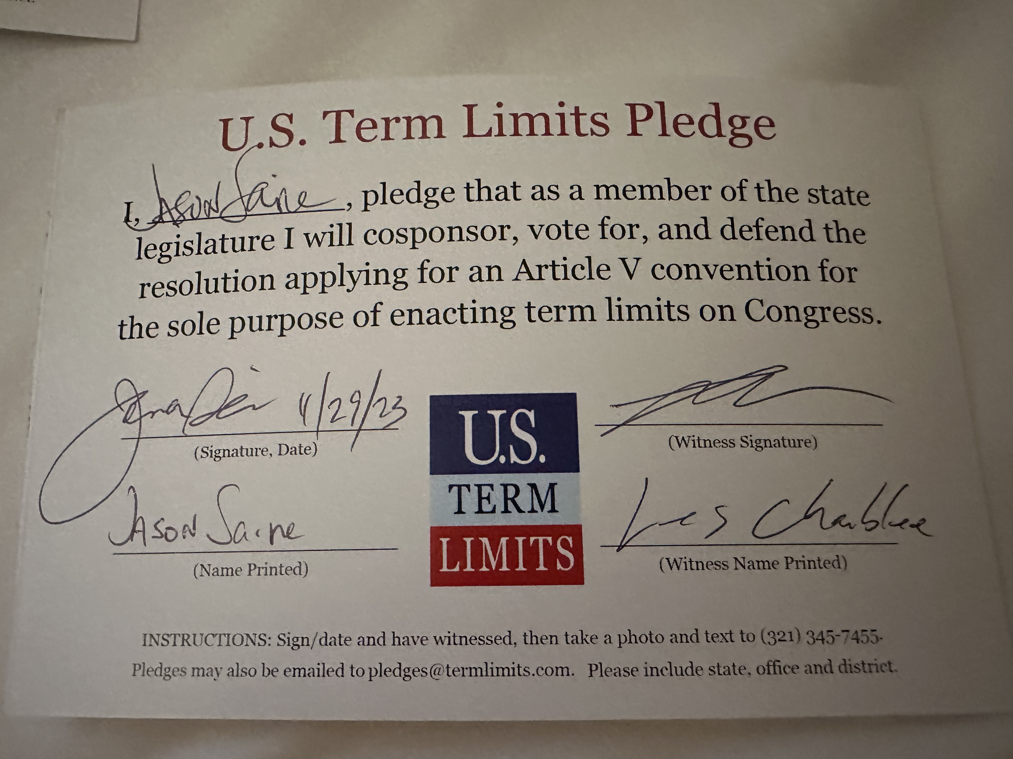 Rep. Jason Saine Pledges to Support Congressional Term Limits