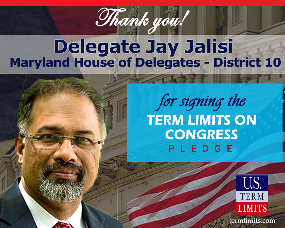 Washington, D.C. – U.S. Term Limits (USTL), the leader in the national, non-partisan movement to limit terms for elected officials, is gathering support from state lawmakers across the nation. Its mission is to get 34 states to apply for an amendment proposal convention specific to term limits on Congress. 2020 Maryland House Delegate Jay Jalisi (district 10), has committed support for term limits on Congress by signing the Term Limits Convention pledge.