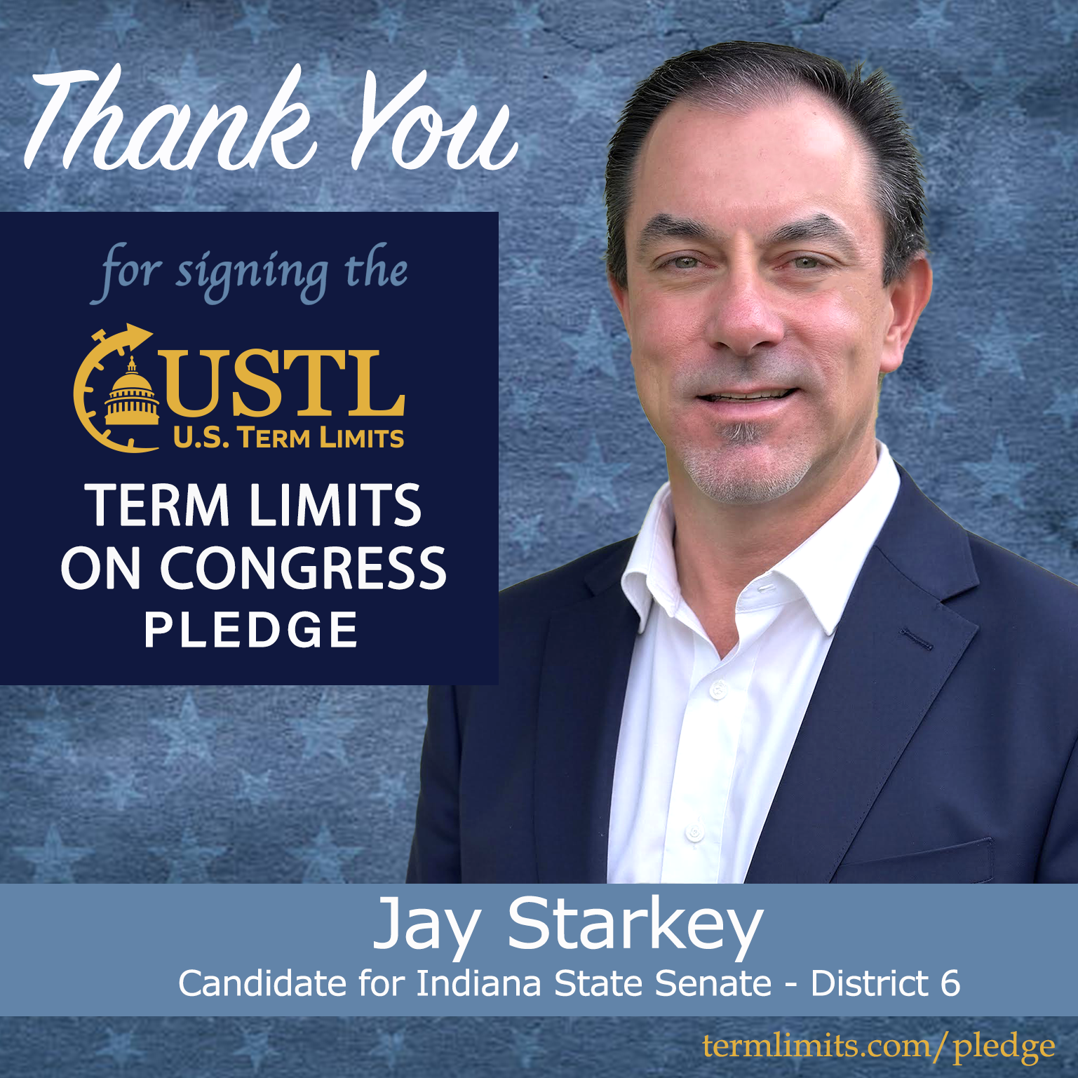 Morocco, IN – U.S. Term Limits (USTL), the leader in the national, non-partisan movement to limit terms for elected officials, is gathering support from state lawmakers across the nation. Its mission is to get 34 states to apply for an amendment proposal convention specific to term limits on Congress. 2026 Indiana state senate candidate, Jay Starkey (district 6), has committed support for term limits on Congress by signing the term limits convention pledge. Previously, incumbent Senator Rick Niemeyer also signed the pledge.