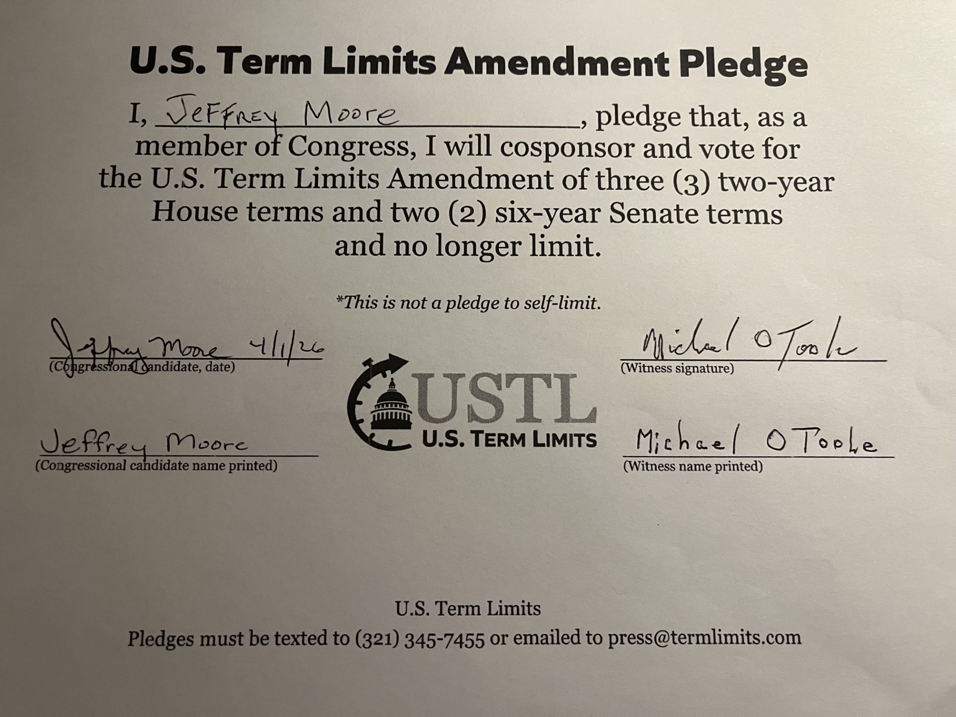 Jeff Moore Pledges to Support Congressional Term Limits