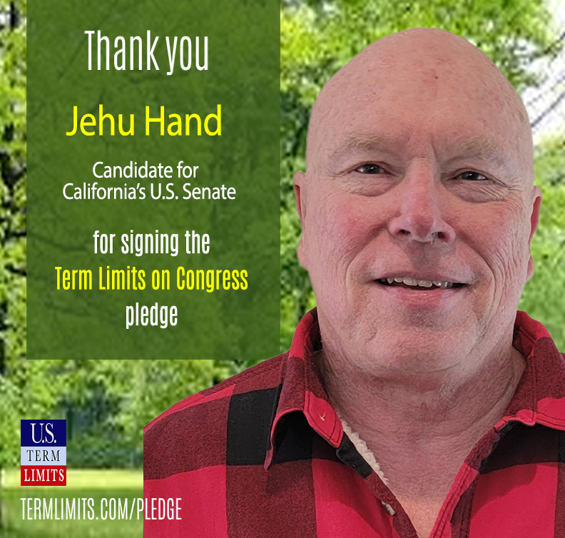 Washington D.C. – U.S. Term Limits (USTL), the leader in the non-partisan national movement to limit terms for elected officials, praises 2024 U.S. Senate candidate for California, Jehu Hand, for signing the pledge for an amendment to term limit Congress. Previously, candidate Zafar Inam also signed the pledge.