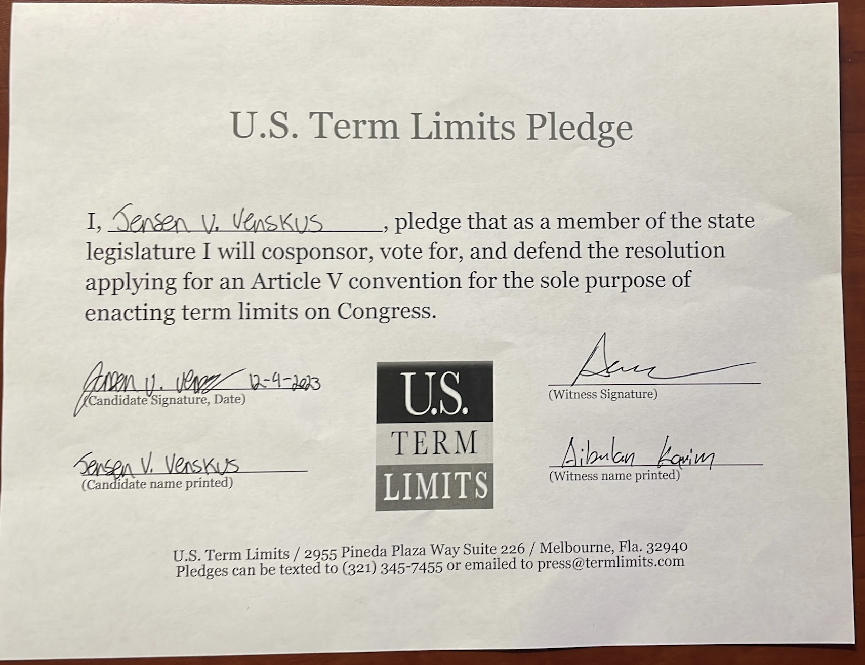 Jensen Venskus Pledges to Support Congressional Term Limits