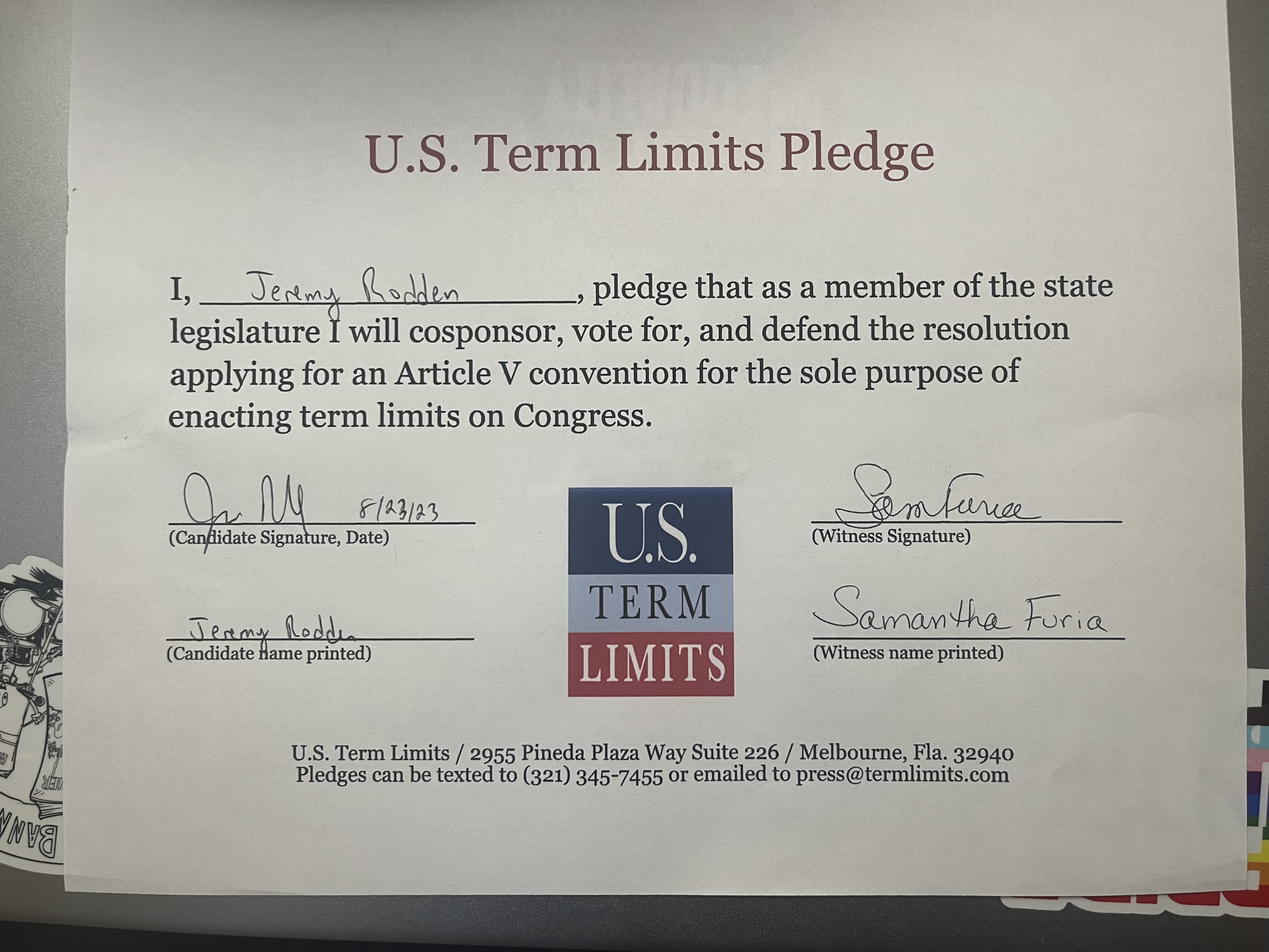 Jeremy Rodden Pledges to Support Congressional Term Limits