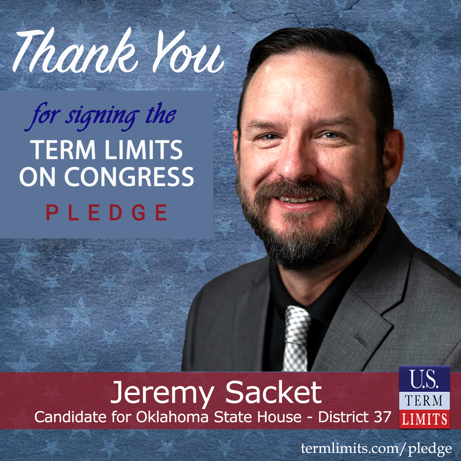 Ponca City, OK – U.S. Term Limits (USTL), the leader in the national, non-partisan movement to limit terms for elected officials, is gathering support from state lawmakers across the nation. Its mission is to get 34 states to apply for an amendment proposal convention specific to term limits on Congress. 2026 Oklahoma state house candidate, Jeremy Sacket (district 37), has committed support for term limits on Congress by signing the term limits convention pledge. Sacket is the first signer in this race.