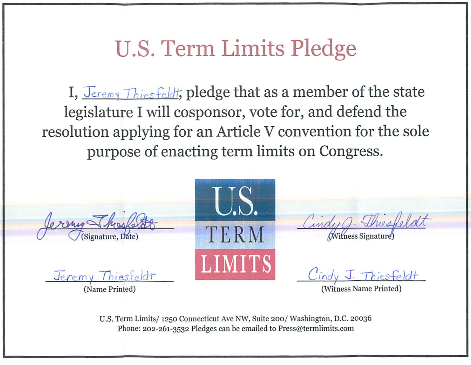 Rep. Jeremy Thiesfeldt Pledges to Support Congressional Term Limits