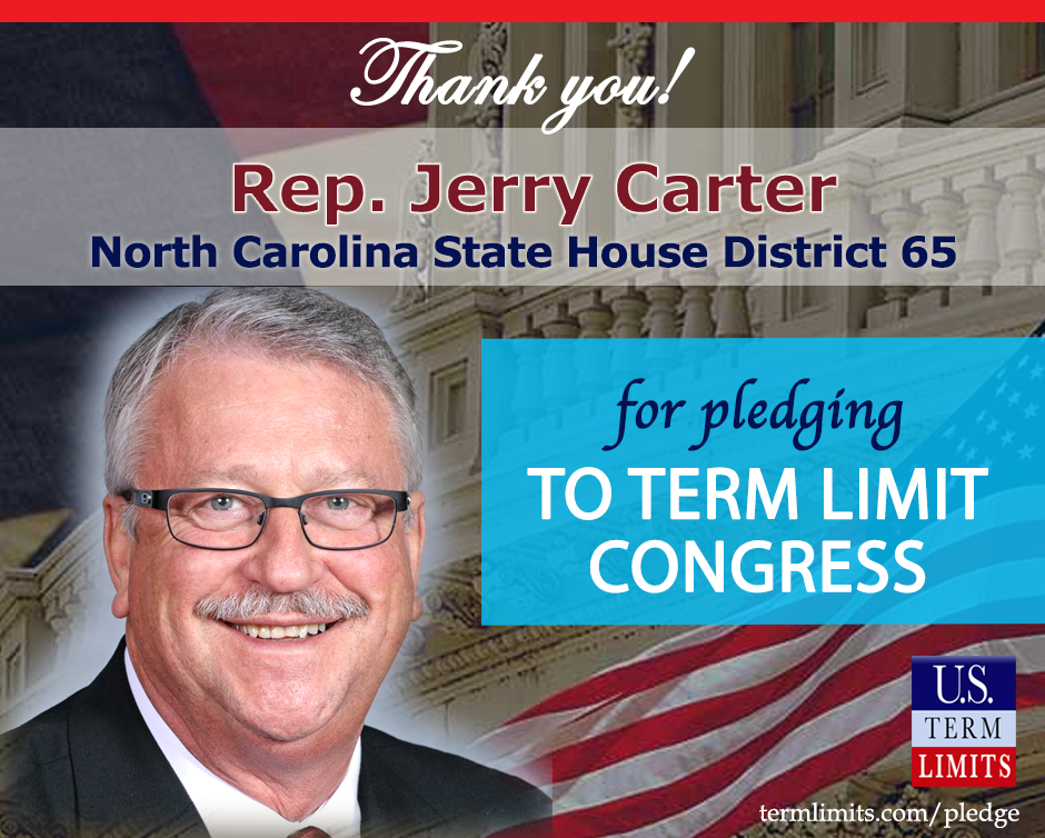 Greensboro, NC – U.S. Term Limits (USTL), the leader in the national, non-partisan movement to limit terms for elected officials, is gathering support from state lawmakers across the nation. Its mission is to get 34 states to apply for an amendment proposal convention specific to term limits on Congress. North Carolina state house Rep. Jerry Carter, (district 65), has committed support for term limits on Congress by signing the Term Limits Convention pledge. Previously, candidate Amanda Bell also signed the pledge.