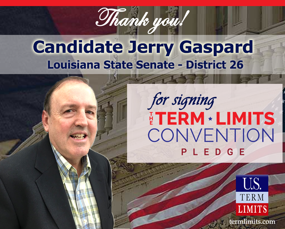 Washington, D.C. – U.S. Term Limits (USTL), the leader in the national, non-partisan movement to limit terms for elected officials, is gathering support from state lawmakers across the nation. Its mission is to get 34 states to apply for an amendment proposal convention specific to term limits on Congress. Louisiana state senate candidate Jerry Gaspard (district 26) has committed support for term limits on Congress by signing the Term Limits Convention pledge. The primary election is scheduled for October 12, 2019.