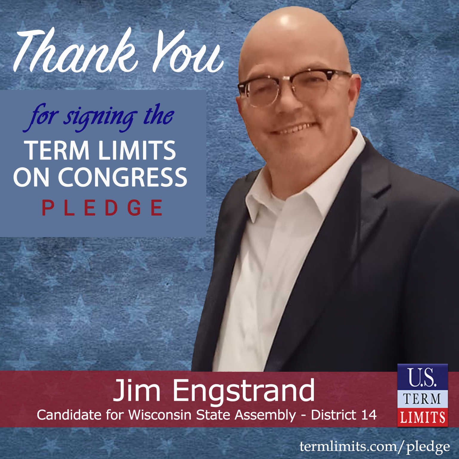 USTL State Chair, Jason Church, commented on Engstrand’s pledge saying, “I am thrilled that Jim has signed the pledge supporting term limits on Congress. We are gaining momentum in Wisconsin so that we can join the growing number of states supporting Congressional term limits. Jim recognizes the importance of fixing Washington,” said Church.