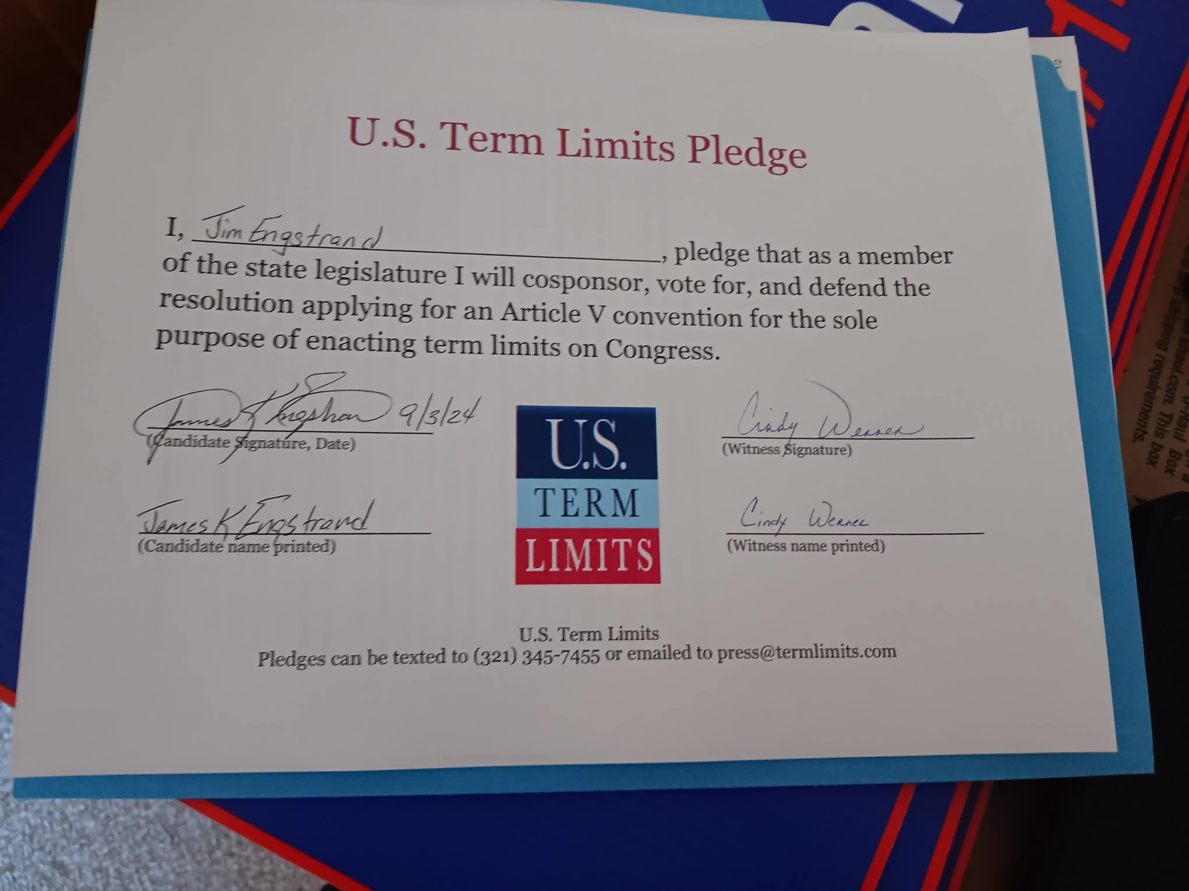 Jim Engstrand Pledges to Support Congressional Term Limits