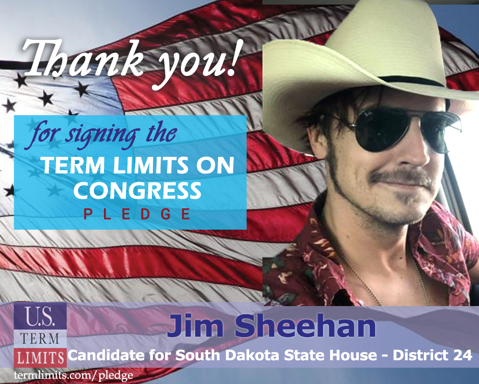 Sioux Falls, SD – U.S. Term Limits (USTL), the leader in the national, non-partisan movement to limit terms for elected officials, is gathering support from state lawmakers across the nation. Its mission is to get 34 states to apply for an amendment proposal convention specific to term limits on Congress. South Dakota state house candidate, Jim Sheehan (district 24) has committed support for term limits on Congress by signing the Term Limits Convention pledge. Previously, candidate Mary Weinheimer also signed the pledge.