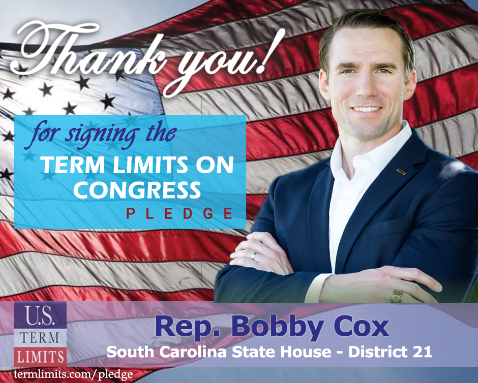 The U.S. Term Limits pledge is provided to candidates and members of state legislatures. It reads, “I pledge that, as a member of the state legislature, I will cosponsor, vote for, and defend the resolution applying for an Article V convention for the sole purpose of enacting term limits on Congress.”