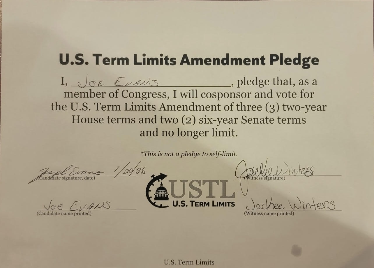 Joe Evans Pledges to Support Term Limits on Congress