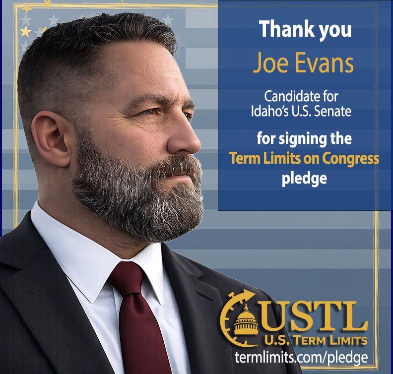 Washington D.C. – U.S. Term Limits (USTL), the leader in the non-partisan national movement to limit terms for elected officials, praises 2026 U.S. Senate candidate for Idaho, Joe Evans, for signing the pledge for an amendment to term limit Congress.