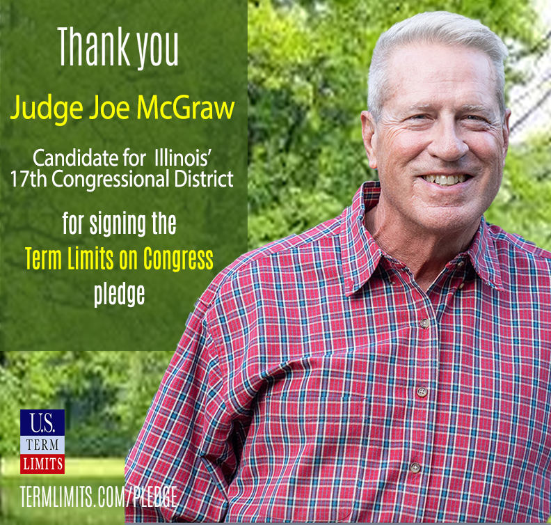 Washington D.C. – U.S. Term Limits (USTL), the leader in the non-partisan national movement to limit terms for elected officials, praises 2024 U.S. House candidate for Illinois, Judge Joe McGraw (District 17), for signing the pledge for an amendment to term limit Congress. Previously, incumbent Eric Sorensen and candidate Scott Crowl also signed the pledge.