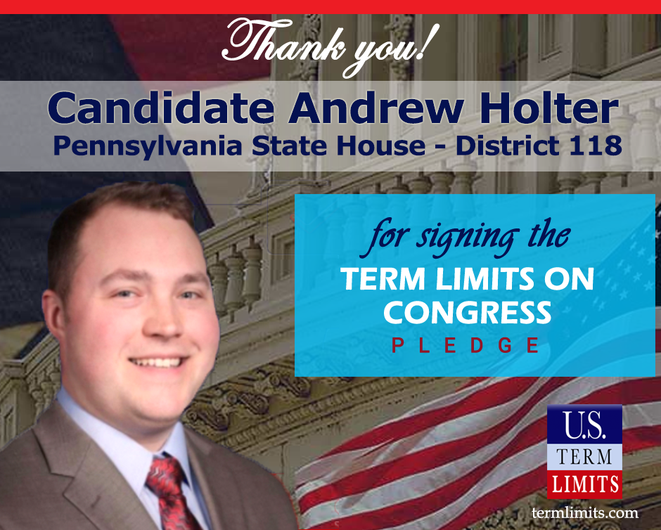 The U.S. Term Limits pledge is provided to candidates and members of state legislatures. It reads, “I pledge that, as a member of the state legislature, I will cosponsor, vote for, and defend the resolution applying for an Article V convention for the limited purpose of enacting term limits on Congress.”
