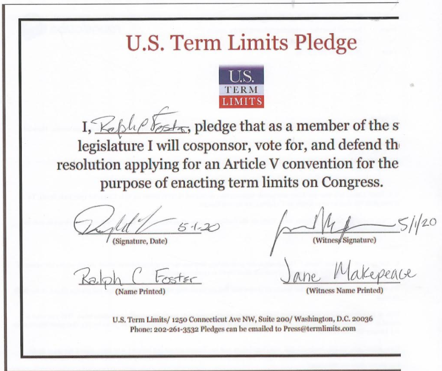 USTL President, Philip Blumel, commented on Read’s and Foster’s pledges saying, “Joe’s and Ralph’s support of term limits shows that there are individuals who are willing to listen to the majority of voters who want term limits. America needs a Congress that will be served by citizen legislators, not career politicians.”