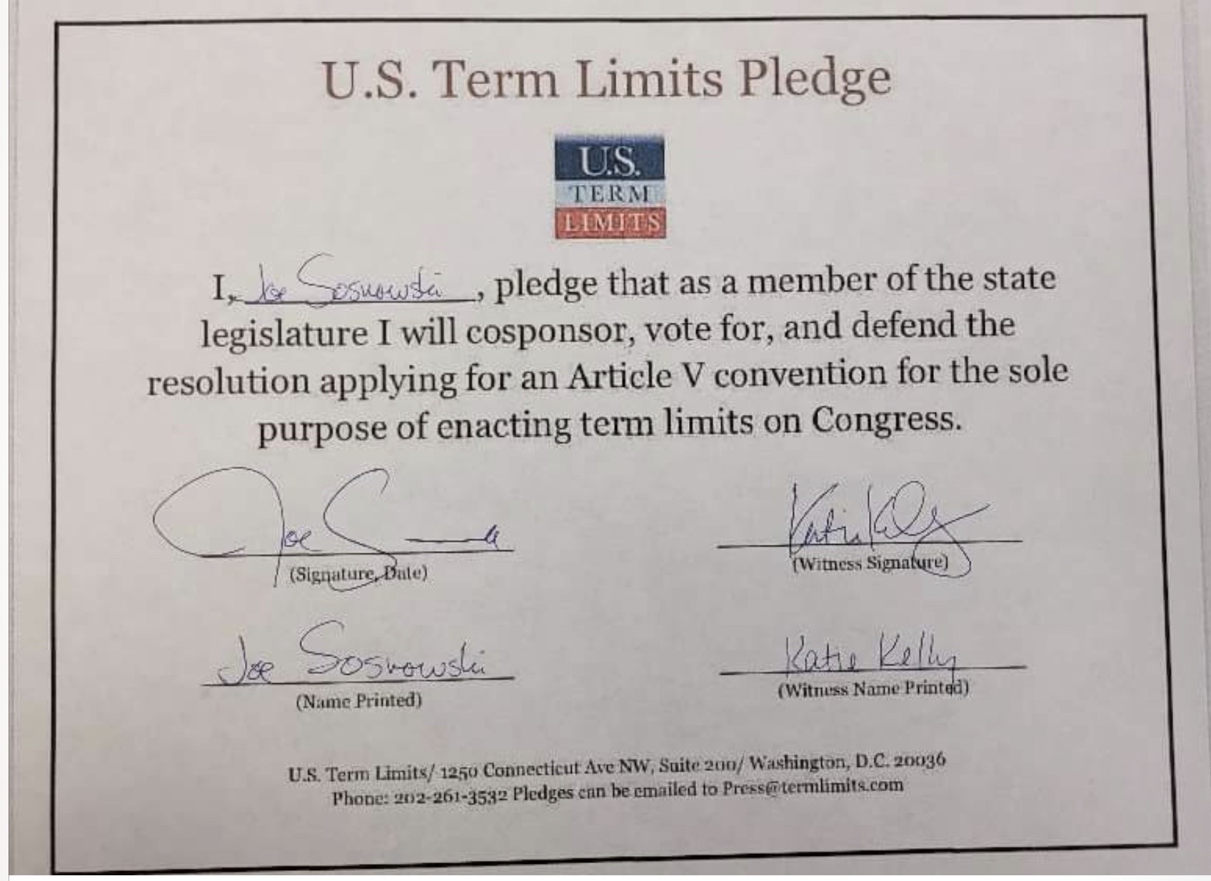 Rep. Joe Sosnowski Pledges to Support Congressional Term Limits