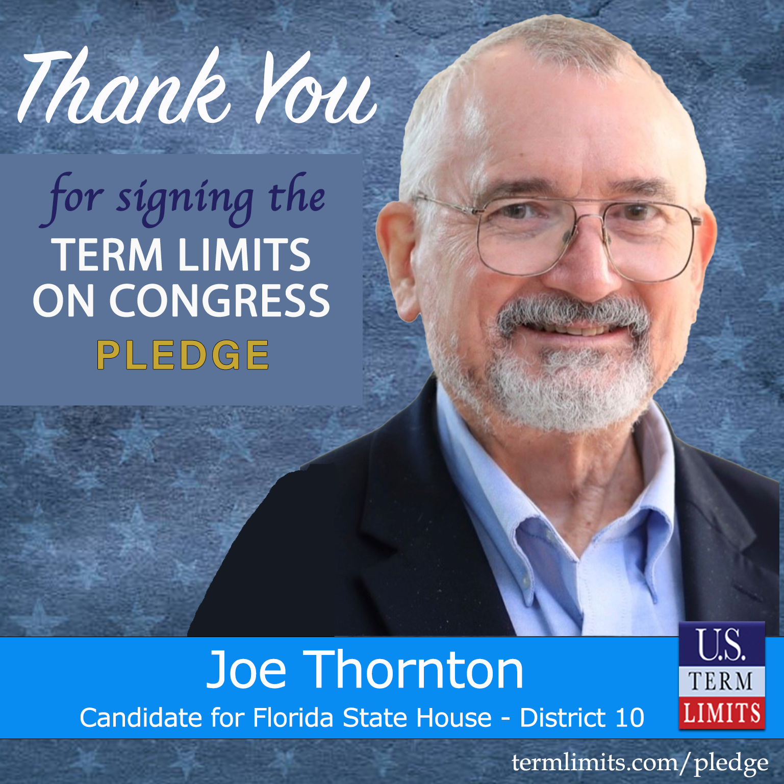 Lake City, FL – U.S. Term Limits (USTL), the leader in the national, non-partisan movement to limit terms for elected officials, is gathering support from state lawmakers across the nation. Its mission is to get 34 states to apply for an amendment proposal convention specific to term limits on Congress. 2026 Florida state house candidate, Joe Thornton (district 10), has committed support for term limits on Congress by signing the term limits convention pledge.