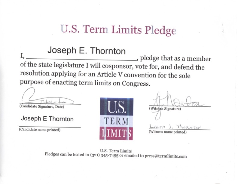 Joe Thornton Pledges to Support Congressional Term Limits