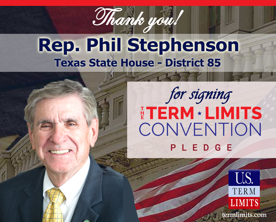 The U.S. Term Limits amendment pledge is provided to every announced candidate for federal office. It reads, “I pledge that as a member of Congress, I will cosponsor and vote for the U.S. Term Limits amendment of three (3) House terms and two (2) Senate terms and no longer limit.” The U.S. Term Limits constitutional amendment has been introduced in both the U.S. Senate by Senator Ted Cruz and his colleagues (SJR3) and the U.S. House by Representative Ralph Norman (HJR12).