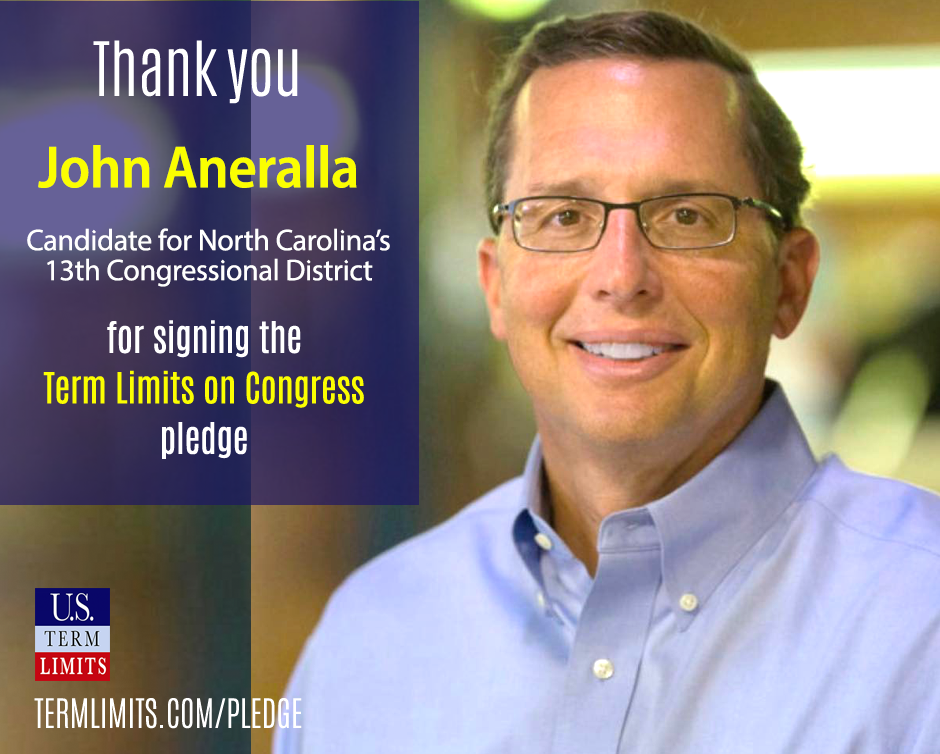Washington D.C. – U.S. Term Limits (USTL), the leader in the non-partisan national movement to limit terms for elected officials, praises 2022 U.S. house candidate for North Carolina, John Aneralla (district 13), for signing the pledge for an amendment to term limit Congress. Previously, candidate Tyler Lee also signed the pledge.