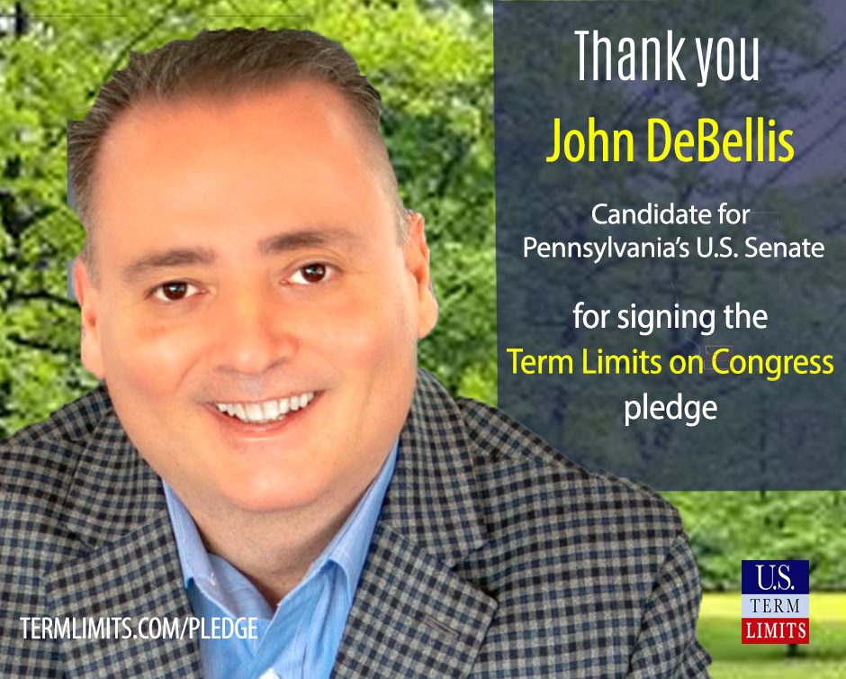 Washington D.C. – U.S. Term Limits (USTL), the leader in the non-partisan national movement to limit terms for elected officials, praises 2022 U.S. senate candidate for Pennsylvania, John DeBellis, for signing the pledge for an amendment to term limit Congress. Previously, candidates Jeff Bartos and Larry E. Johnson also signed the pledge.
