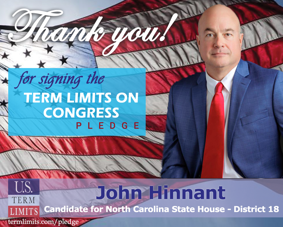 Wilmington, NC – U.S. Term Limits (USTL), the leader in the national, non-partisan movement to limit terms for elected officials, is gathering support from state lawmakers across the nation. Its mission is to get 34 states to apply for an amendment proposal convention specific to term limits on Congress. North Carolina state house candidate, John Hinnant (district 17), has committed support for term limits on Congress by signing the U.S. Term Limits pledge.