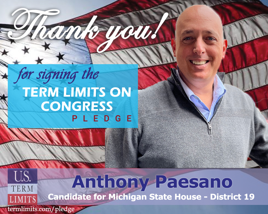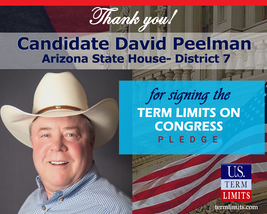 The U.S. Term Limits amendment pledge is provided to every announced candidate for federal office. It reads, “I pledge that as a member of Congress, I will cosponsor and vote for the U.S. Term Limits amendment of three (3) House terms and two (2) Senate terms and no longer limit.”