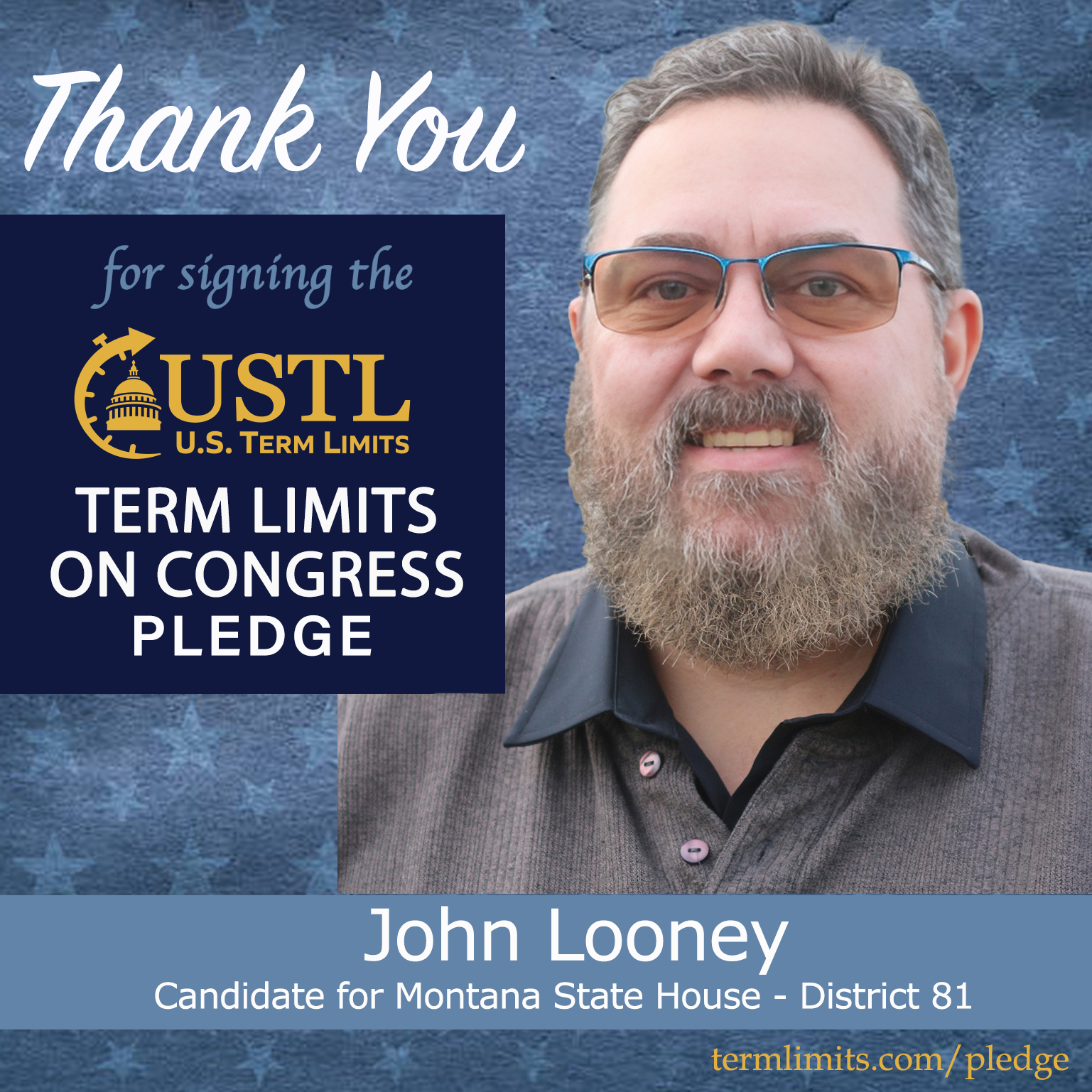 Helena, MT – U.S. Term Limits (USTL), the leader in the national, non-partisan movement to limit terms for elected officials, is gathering support from state lawmakers across the nation. Its mission is to get 34 states to apply for an amendment proposal convention specific to term limits on Congress. 2026 Montana state house candidate, John Looney (district 81), has committed support for term limits on Congress by signing the term limits convention pledge.