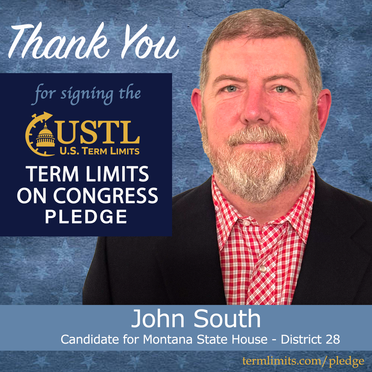 Glasgow, MT – U.S. Term Limits (USTL), the leader in the national, non-partisan movement to limit terms for elected officials, is gathering support from state lawmakers across the nation. Its mission is to get 34 states to apply for an amendment proposal convention specific to term limits on Congress. 2026 Montana state house candidate, John South (district 28), has committed support for term limits on Congress by signing the term limits convention pledge.