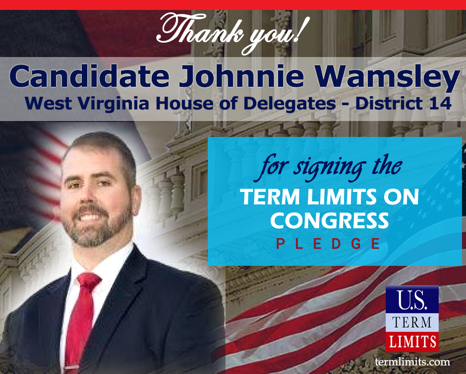 Washington, D.C. – U.S. Term Limits (USTL), the leader in the national, non-partisan movement to limit terms for elected officials, is gathering support from state lawmakers across the nation. Its mission is to get 34 states to apply for an amendment proposal convention specific to term limits on Congress. 2020 West Virginia house of delegates candidate, Johnnie Wamsley (district 14), has committed support for term limits on Congress by signing the Term Limits Convention pledge. Wamsley is the first signer in this race. The primary is scheduled for May 12, 2020.