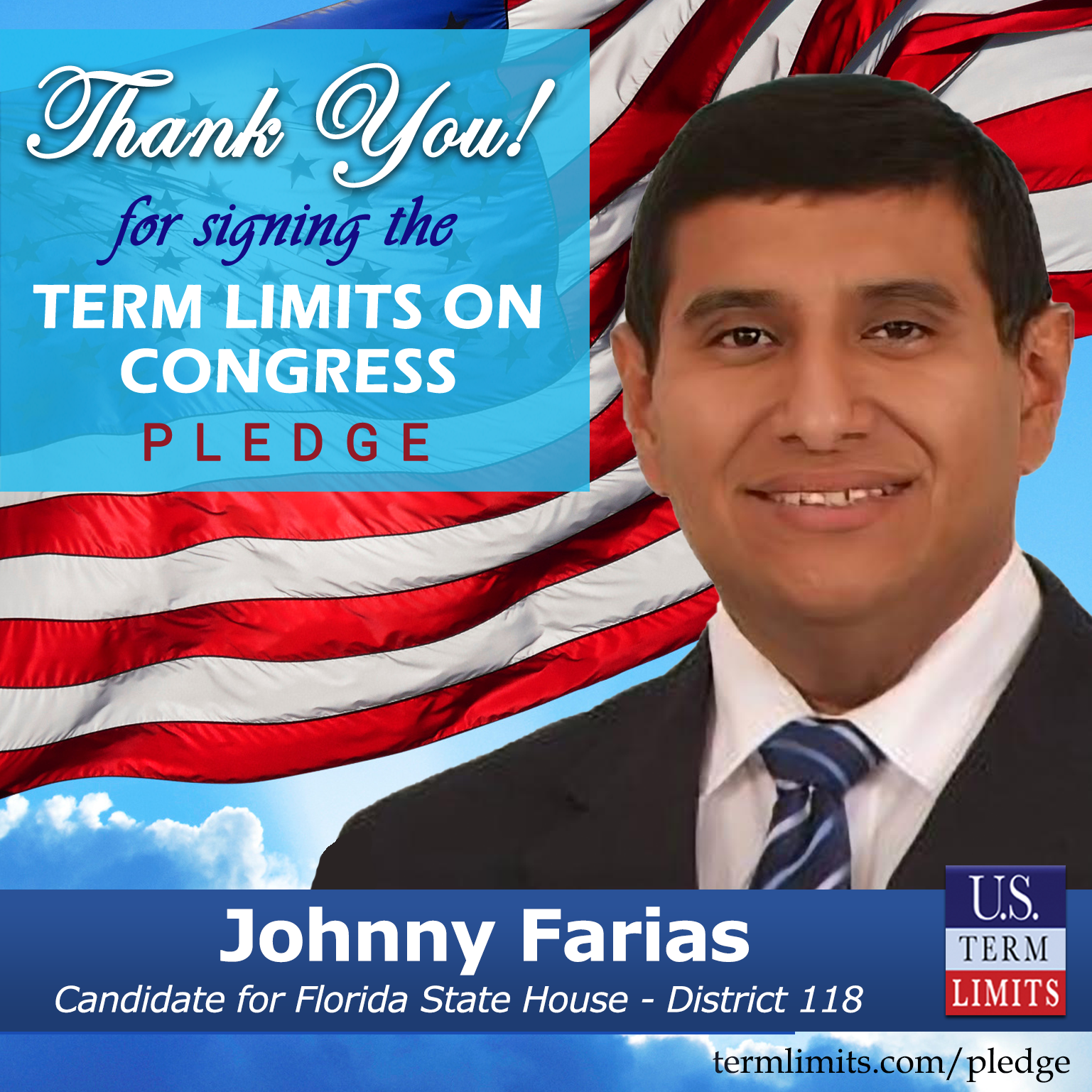 USTL President, Philip Blumel, commented on Farias’s pledge saying, “Johnny’s strong support of term limits shows that there are individuals who are willing to listen to the majority of voters who want term limits. America needs a Congress that will be served by citizen legislators, not career politicians.”