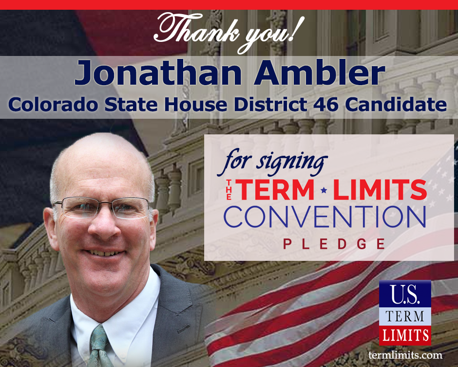 Washington, D.C. – U.S. Term Limits (USTL), the leader in the national, non-partisan movement to limit terms for elected officials, is gathering support from state lawmakers across the nation. Its mission is to get 34 states to apply for an amendment proposal convention specific to term limits on Congress. Colorado house candidate Jonathan Ambler, district 46, has committed his support for term limits on Congress by signing the Term Limits Convention pledge. Ambler is the first candidate in this race to sign the pledge.