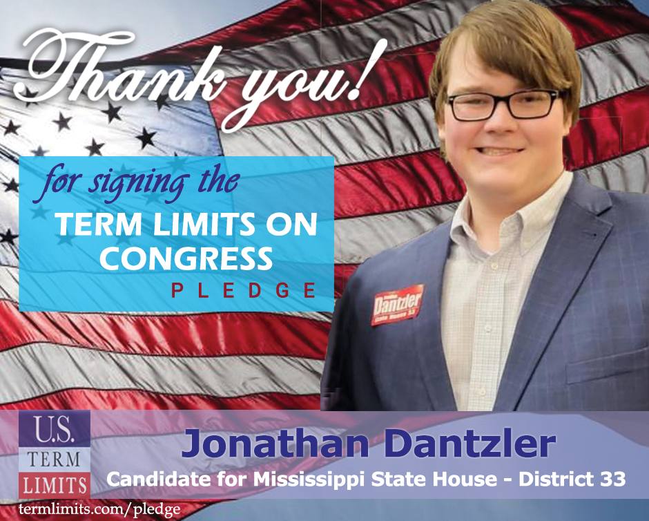 Biloxi, MS – U.S. Term Limits (USTL) is a non-partisan group working to limit the terms of elected officials. They aim to get 34 states to apply for an amendment proposal convention specifically for term limits on Congress. Mississippi state house candidate, Jonathan Dantzler (district 33), has pledged his support for term limits on Congress by signing the Term Limits Convention pledge.